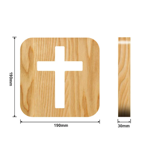 Compré esta lampara en forma de cruz para mi mesita y me encanta. La madera es preciosa,el diseño es simple pero elegante.
